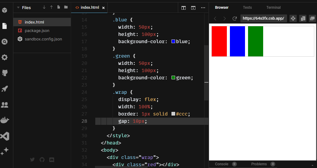 ex) gap: 10px;
