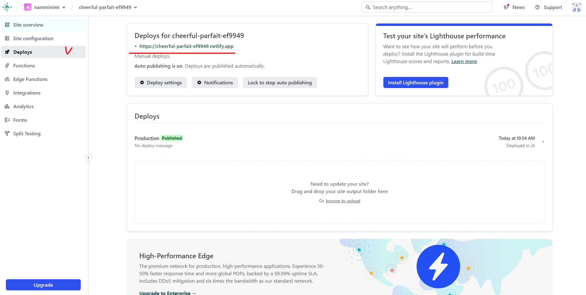 3. 아래 이미지 처럼 내가 만든 사이트가 생긴다.(다시 deploys 클릭)