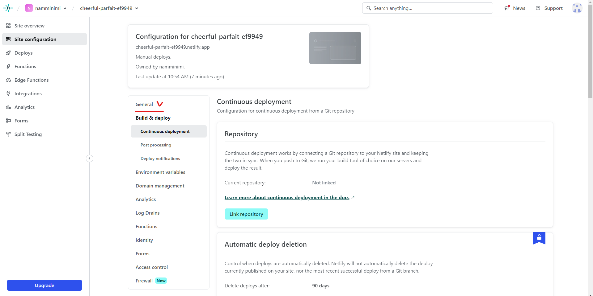 위 이미지에서 deploy Settings 클릭 하고 general 클릭