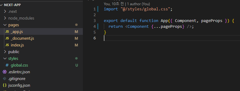 기존에 사용하던 방식하고 같지만 next.js는 _app.js에서만 css 파일을 import 할 수 있음