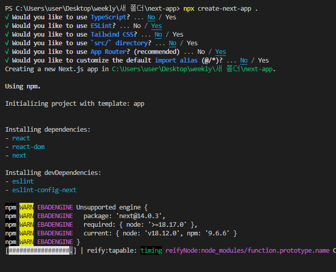 npx create-next-app . //. 는 현재 열려있는 폴더라는 의미
