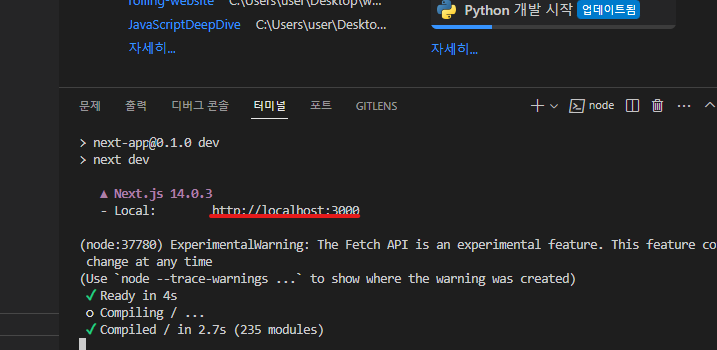 vscode 터미널 열어서 next.js 프로젝트 생성할 폴더에서 명령어 입력