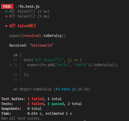 //expect안에 검증할 값 넣고 toBe안에 기대되는 값을 넣어줌