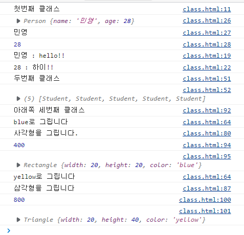 //new 키워드를 사용하여 Rectangle 생성자 생성 console.log("아래쪽 세번째 클래스")