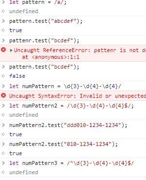 | 휴대폰 | ^01(?:0|1|[6-9]) - (?:\d{3}|\d{4}) - \d{4}$ |